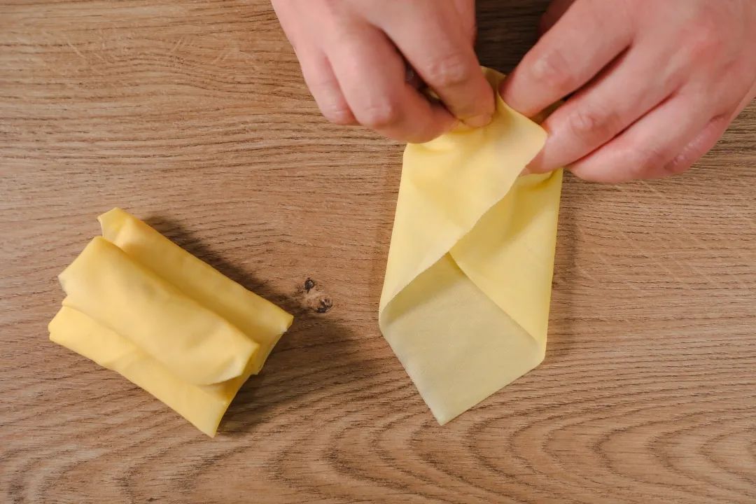2.用薄百叶加入猪肉糜包成百叶包备用。