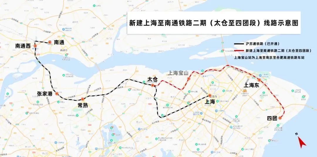 沪苏通铁路二期(太仓至四团段)线路示意图↑