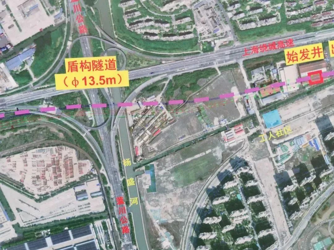 由于上海至南京至合肥高铁高架线路与沪苏通铁路隧道在该处走向几乎“上下平行”,且隧道本身掘进须向西穿越沿江通道宝山段跨蕰川路、杨盛河立交,施工难度大。为确保施工安全和工程质量,项目建设管理单位科学谋划,积极沟通协调,优化施工组织,努力克服难关。