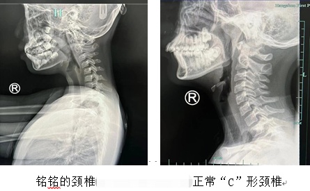 接诊的田飞医师为铭铭安排了X射线检查后发现,铭铭颈椎的弧度已经往反方向弯曲,变成了“一条直线”!
