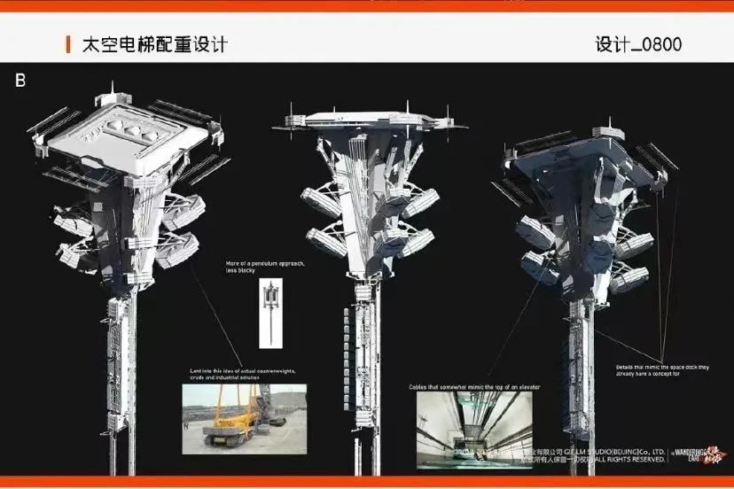 当太空电梯上升或下降时,应该有相应的配重模块固定住缆绳,以免把天上的空间站“拽下来”或把地上的基站“拔起来”。