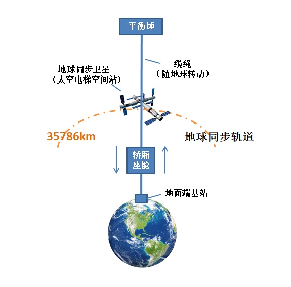 在地面上先建设一座高塔一直延伸到外太空,后在塔内架设电梯就可以“上天”,这个方案和我们常见的垂直电梯的结构异曲同工。