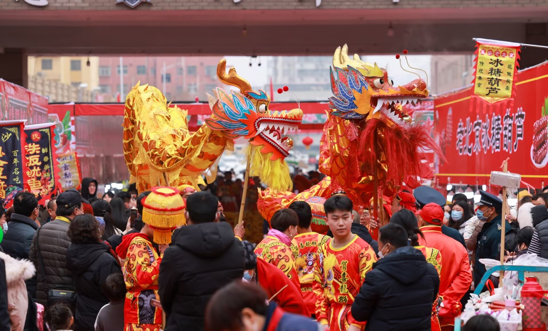 2月18日,枣庄市市中区举办的美食节上,舞龙舞狮、传统美食引得游客纷至沓来,感受浓浓烟火气,喜迎二月二。新春伊始,全省各地纷纷举办传统民俗主题活动,丰富多彩的文旅活动受到广大游客喜爱。(大众日报客户端记者 卢鹏 通讯员 王龙飞 报道)