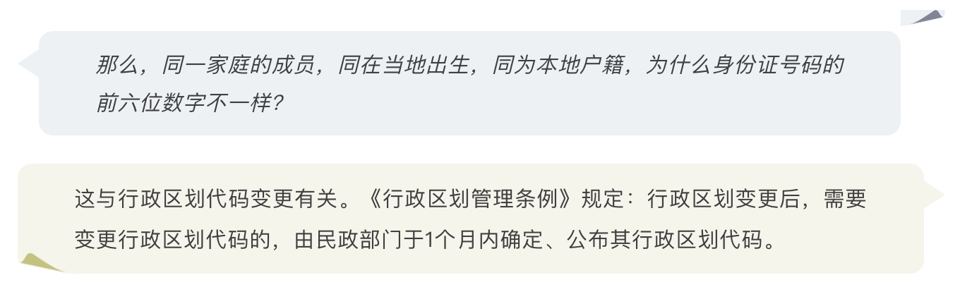 因此,如果常住户口所在地发生了特定情形的行政区划变更,同一家庭的成员,身份证号码的前六位数字会不一样。