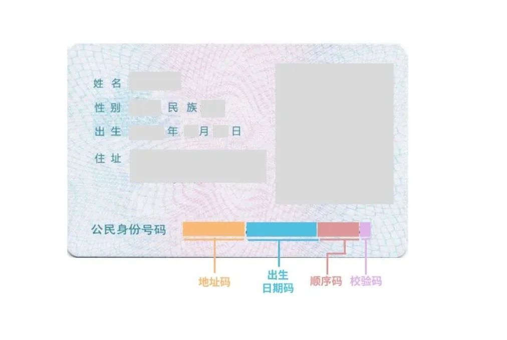 身份证号码由十七位数字本体码和一位校验码组成。从左至右依次为:六位数字地址码、八位数字出生日期码、三位数字顺序码和一位校验码。