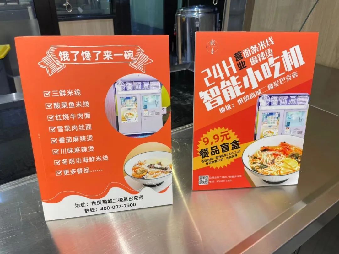 尽管开业时间不长,这家机器人面馆在周边写字楼已经小有名气,工作日里经常需要排队。同一栋楼里,还有类似自助咖啡机的面点贩卖机,可以24小时不间断营业,满足上班族需求。