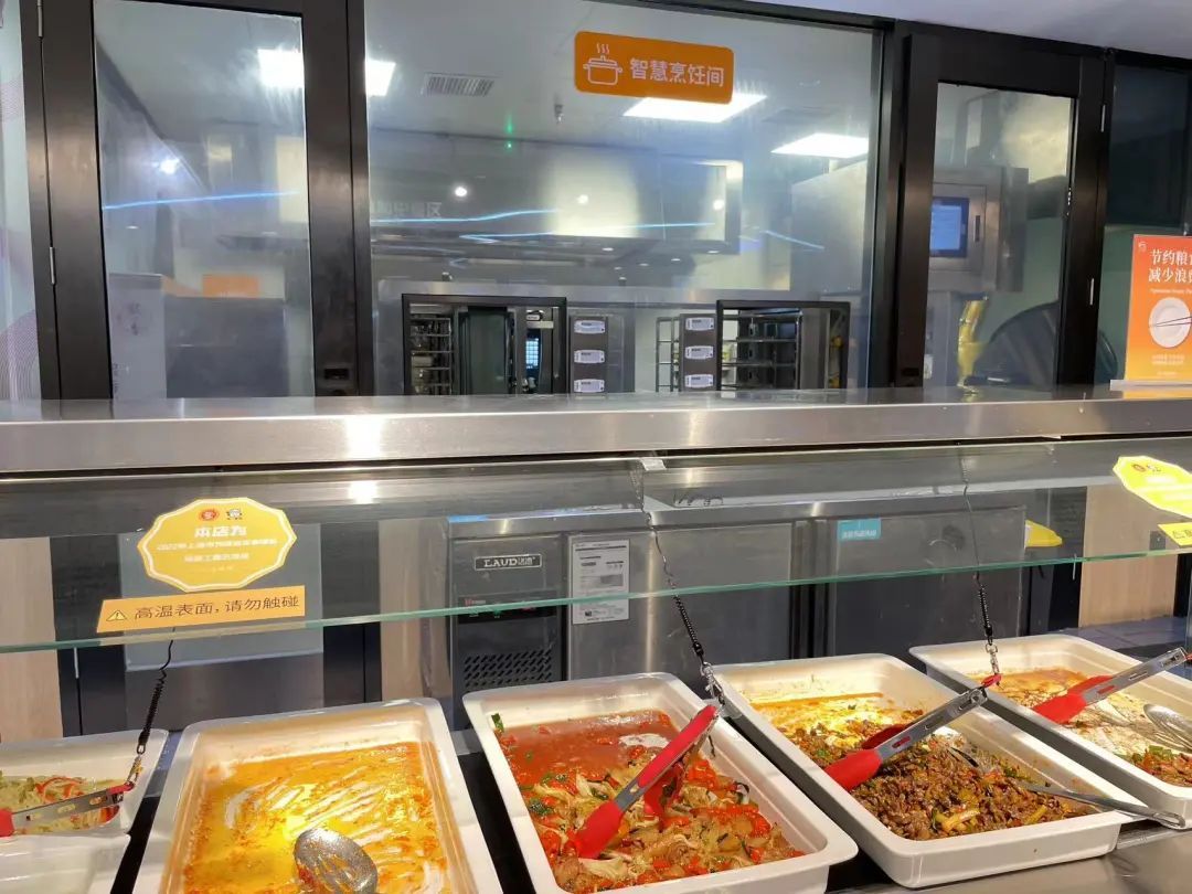 在长宁区的上海世贸商城2楼,由熙香科技打造的小Q饭堂,中午也陆续迎来了几波食客,他们大多是写字楼里加班的白领。不同于传统的楼宇食堂,这家饭堂的饭菜全都由机器人“大厨”制作,服务员只需要把各类净菜投入烹饪设备,5到6分钟一大份菜品就能上桌,供白领们自助选购。