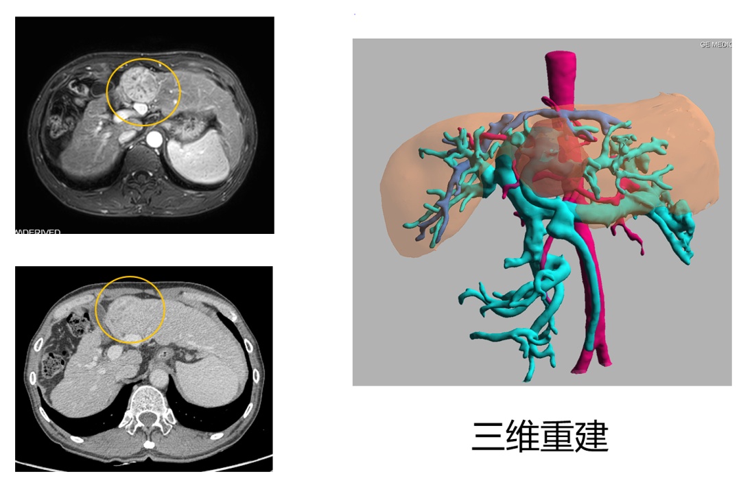 基于磁共振影像的三维重建更符合肝脏手术影像的要求。在同样高效精准条件下,比CT更能提供准确的病灶数目、肿瘤信息,指导手术规划。