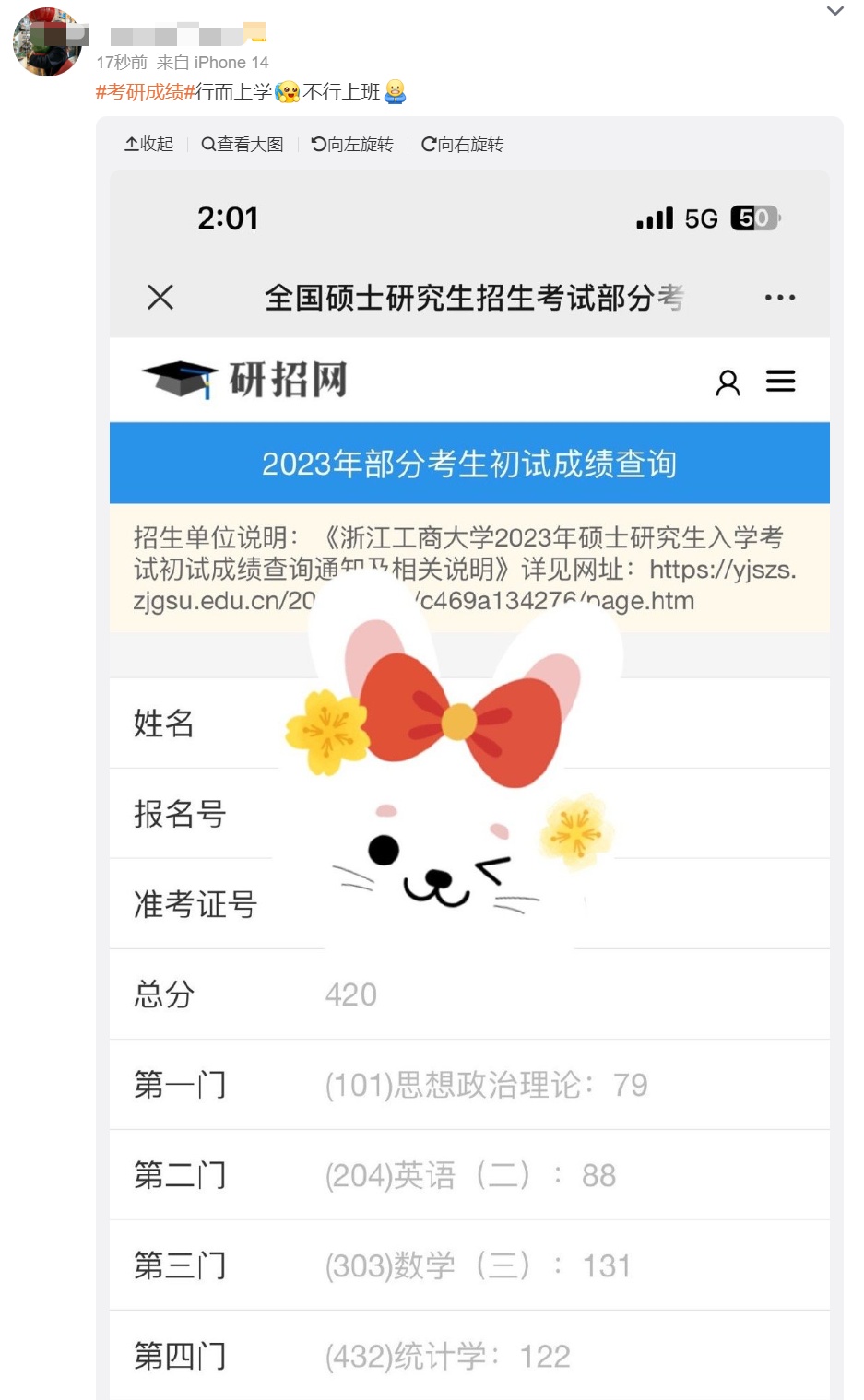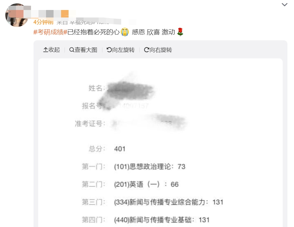 不少网友在网上晒分