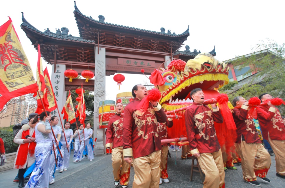 农历二月初二,民间俗称“龙抬头”的日子。悠久绵长的龙文化,深刻留存在上海的城市肌理中,成为非物质文化遗产的一部分流传至今。2月21日,三林镇二月二龙抬头民俗祈福仪式在三林老街举行,用抬龙头的方式祈福。