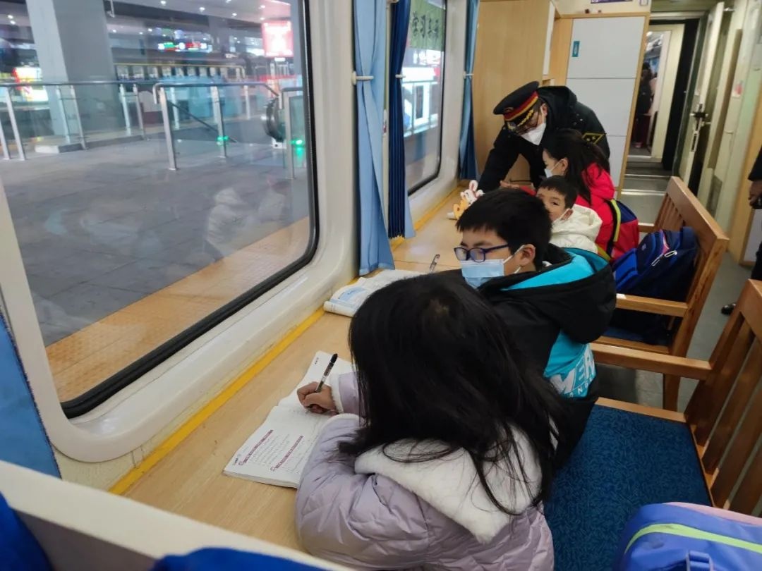 “学习车厢”给学生旅客提供了复习场所