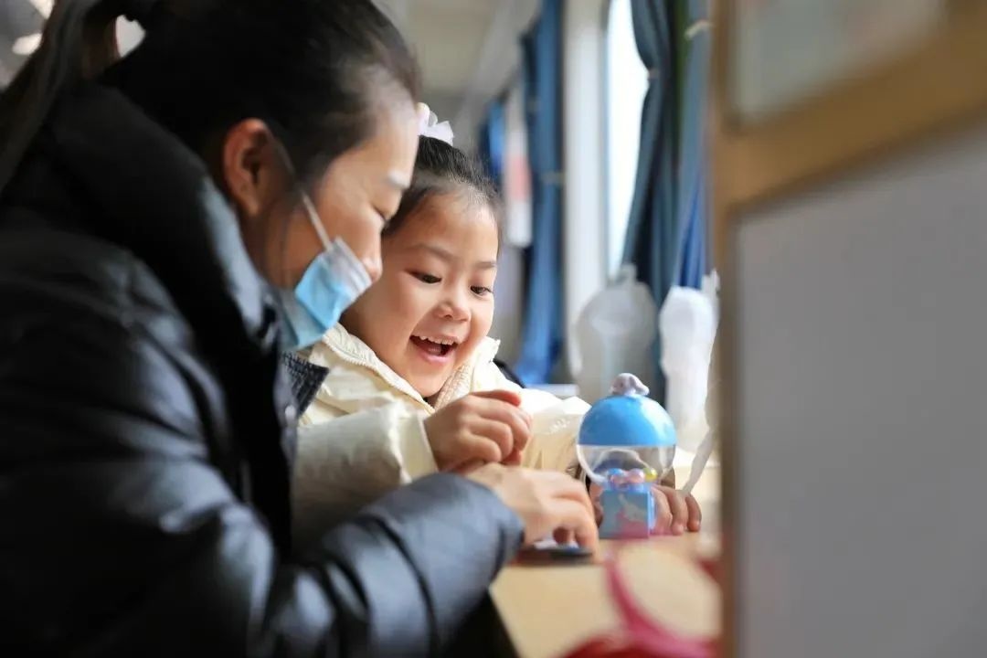 “在列车上还设置列车图书角、