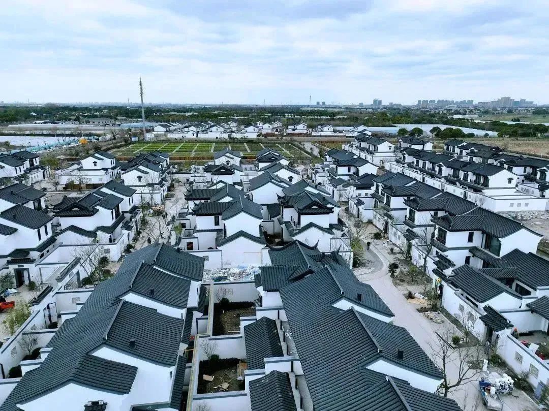 白墙黛瓦、飞檐连天、小桥流水……小嘉来到位于华亭镇联一村的“乡悦华亭”二期建设工地看到,133套古色古香的农宅比肩而立,如同一幅江南水乡画卷。
