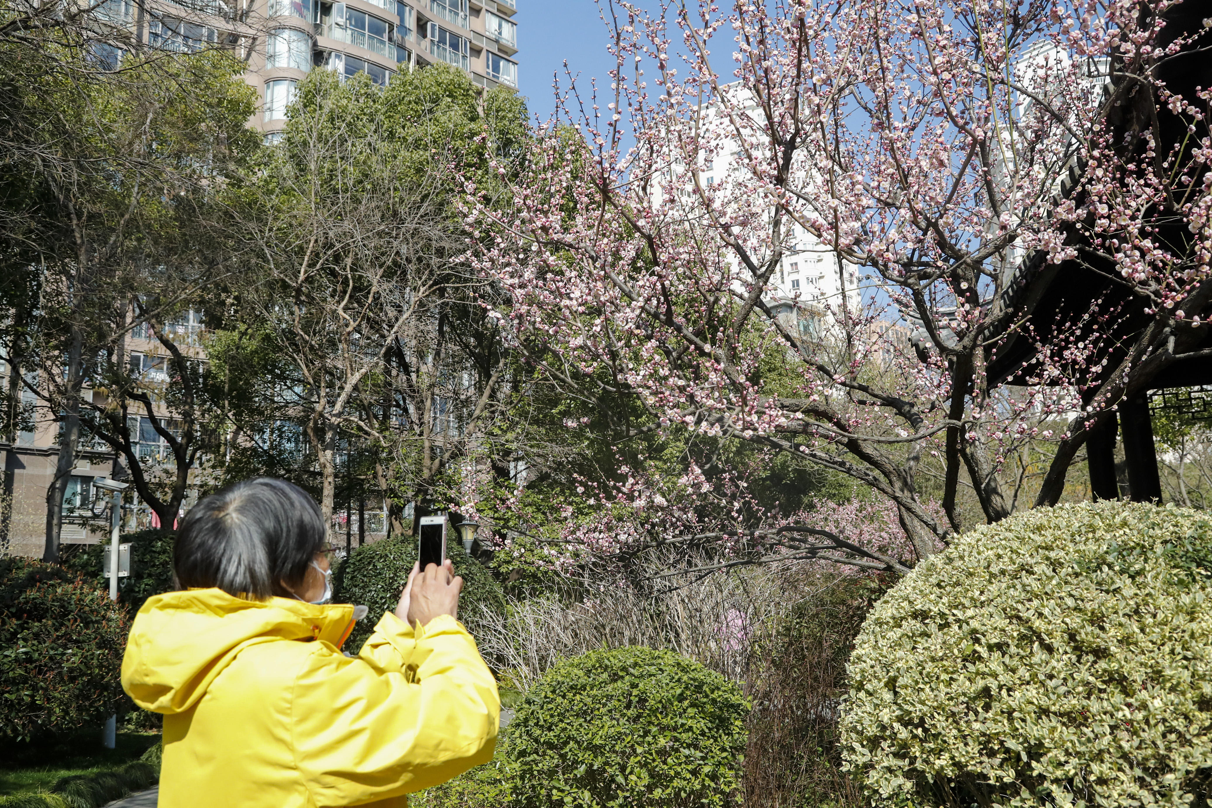 蓬莱公园内的40余株各色梅花已经逐步进入最佳观赏期。各色花瓣随着春风的吹拂,轻轻摇摆,一树树梅花灿若云锦,成为一道靓丽的风景。三朵一簇、五朵一堆,露出金丝般的花蕊,将春天的氛围感拉满。