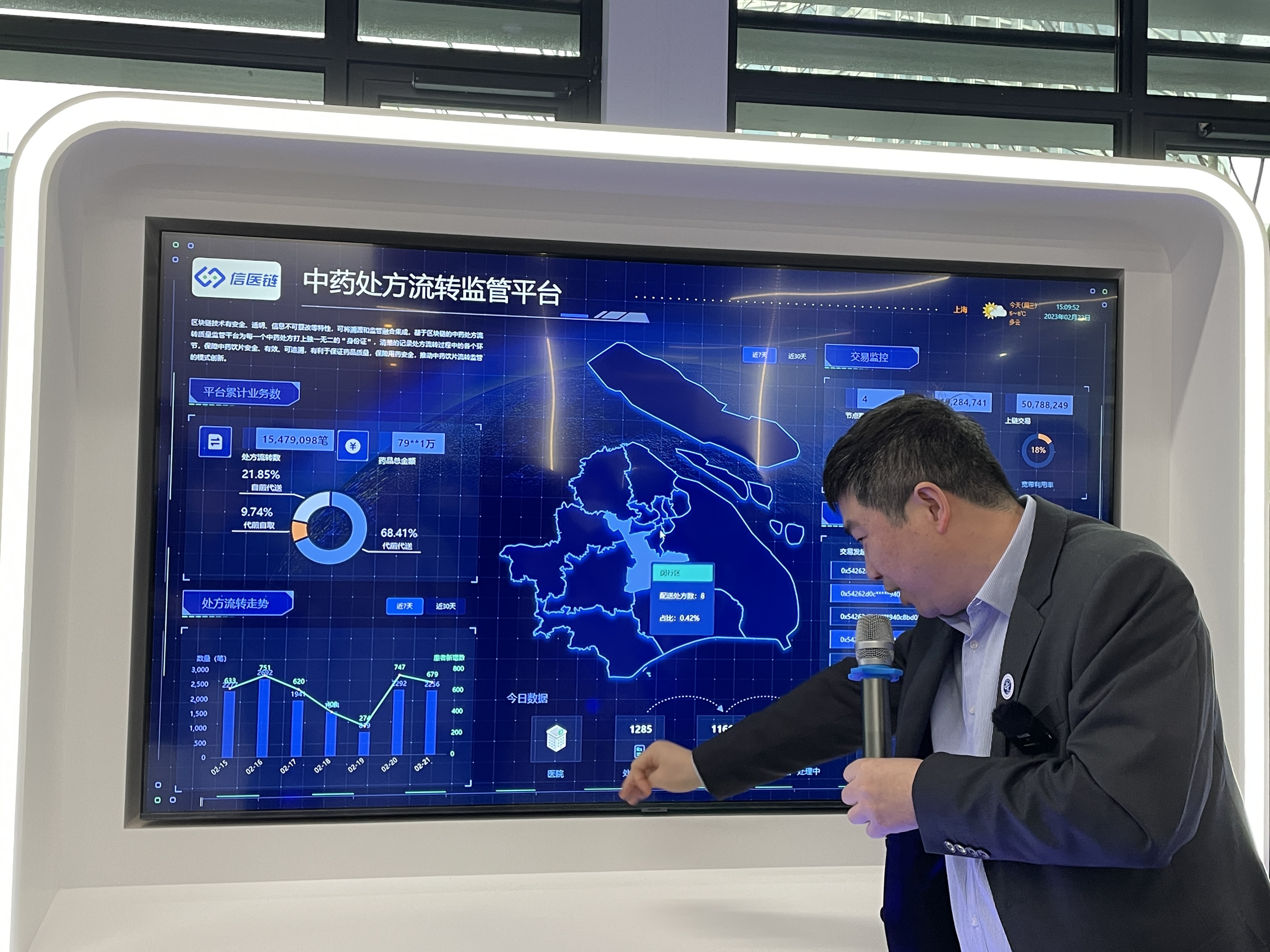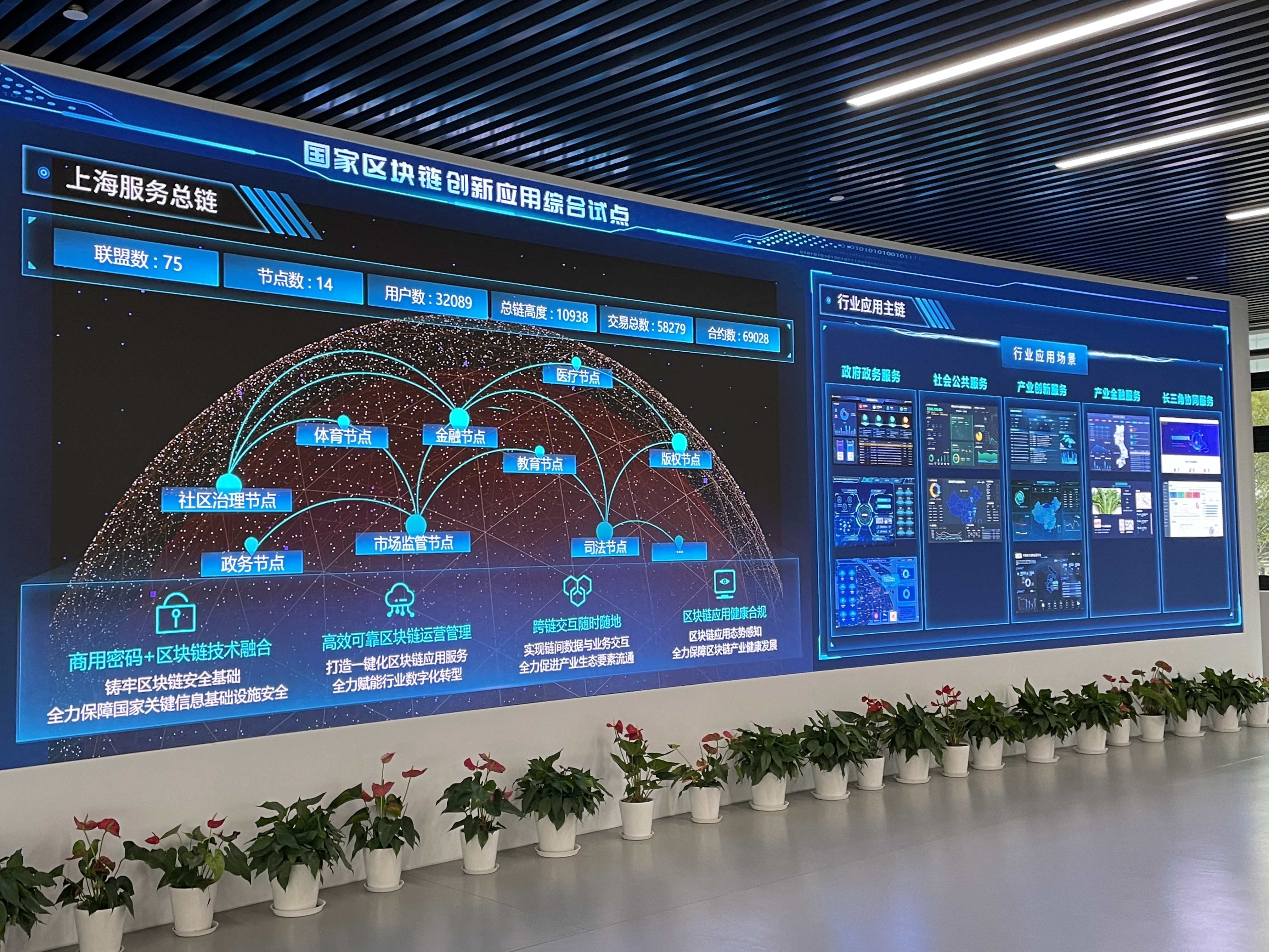 邮轮票务区块链平台、区块链教育平台、区块链汽车金融监控平台、中药处方流转监管平台、静安体育公益配送……走进区块链生态谷内的上海软件中心一层展厅,实时更新的一块块蓝色大小屏清晰展示了基于区块链的14个方向创新应用场景,涵盖政府政务服务、社会公共服务、产业创新服务、产业金融服务等领域。比如,由信医科技研发的一个基于区块链的中药处方流转质量监管平台,为每一个中药处方打上独一无二的“身份证”(即处方上链),清楚地记录中药饮片代煎配送关键环节的过程信息和物流信息,实现全过程追溯代煎配送服务流程,保障中药饮片安全、有效、可追溯。
