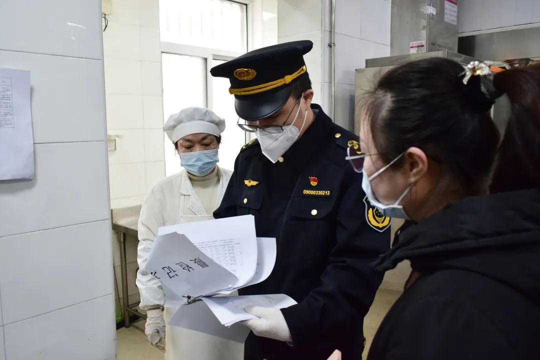 同时,联合检查的各部门还就学校落实校园食品安全“两个责任”“三级管理组织体系”“陪餐制”等,与学校负责人开展了交流指导。