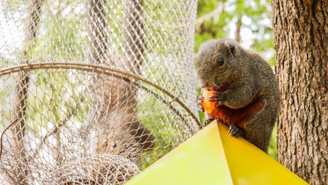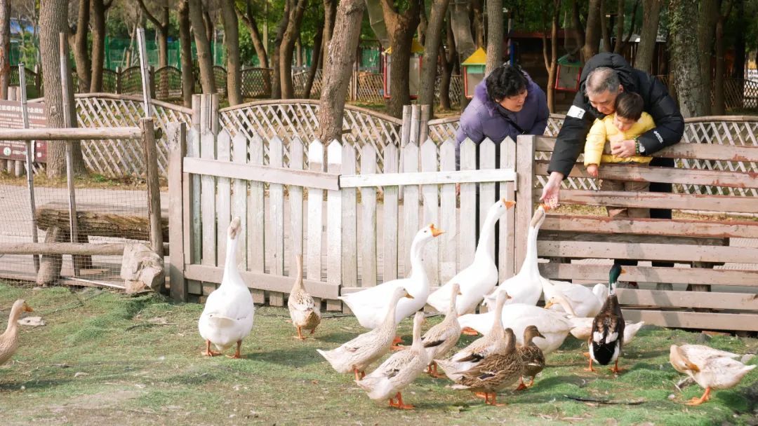 松鼠部落、小猪赛跑、威廉马场……往动物群落深处走去,眼前越发热闹起来:小松鼠扑闪着水汪汪的大眼睛,有的直起身子捧着玉米粒大快朵颐,有的则在树丛间奔跑。小羊羔、大鹅、小猪也十分机灵,见到游客手中的食物便一窝蜂涌来。