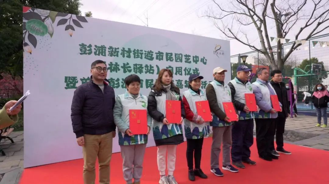 2月25日,彭浦新村街道市民园艺中心(林长驿站)在东茭泾公园内揭牌启用。出席启用仪式的领导和嘉宾分别向5户社区家庭代表颁发树木认养铭牌,以及6位获得区级认证的社区园艺师代表颁发证书。