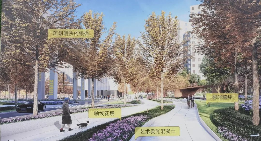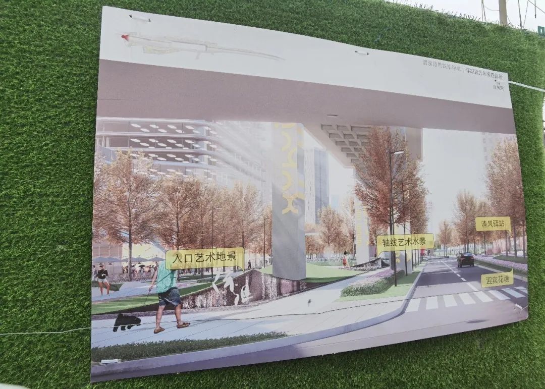 如今,从漕溪路三号口出来,就能看到左手边的大片区域已经被绿色围栏挡住,施工正在紧张进行。根据围栏上的效果图,这里将建设一个共享、弹性使用的清风驿站,以停、坐、玩、景一体的特色创意景观轴线为中心,配合阳光草坪、银杏林、文创市级等打造一片多层次休闲区域。如今,清风驿站已依稀可见,许多树木也已经移至场内。