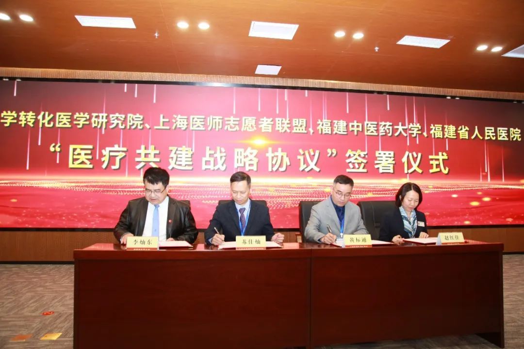 启动仪式上,上海大学转化医学研究院、上海医师志愿者联盟与福建中医药大学、福建省人民医院签署医疗共建战略协议。