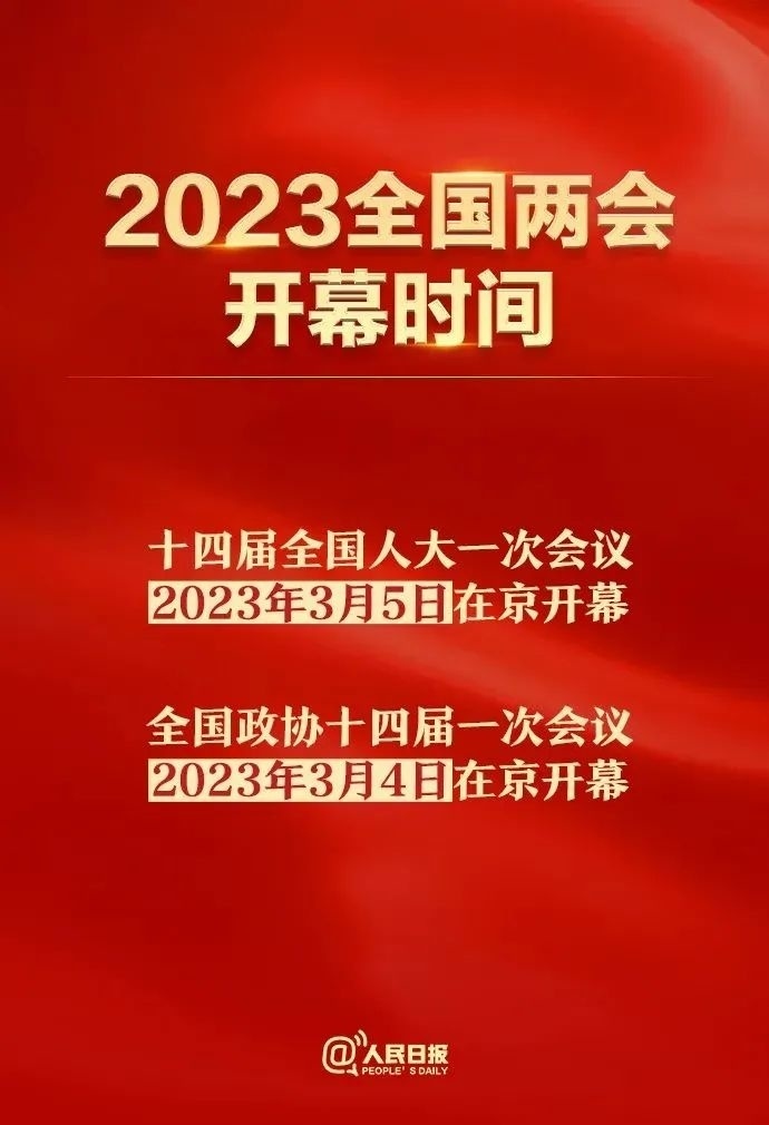 十四届全国人大一次会议和全国政协十四届一次会议,将分别于2023年3月5日和3月4日在京开幕。