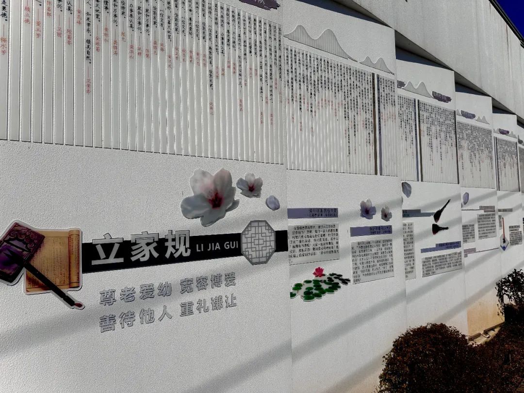 在竖新镇仙桥村的游客接待中心和篮球场,“家风家训墙”格外引人注目,墙上展示着村里402户村民的家训。“与人友善、助人为乐”“读书明理、宽容大度”……这些家训不仅上了家风家训墙,还张贴在了家家户户的大门口,常有村民围在一起自省、自查,督促自己践行家训。