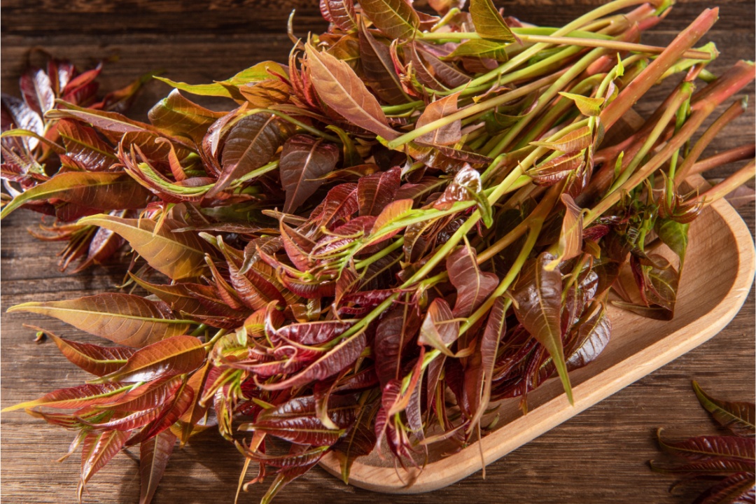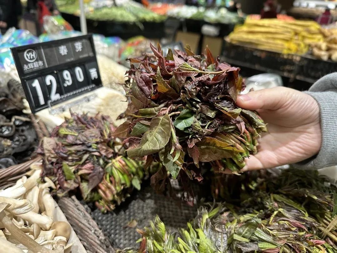 古人说“不时不食”,吃香椿是有时令限制的。在江南地区,每年春分前后,香椿萌发嫩芽,这时的香椿色泽红亮、清香鲜嫩,也是采摘和食用香椿的最佳时间,之后香椿就逐渐老化。目前,在宝山一些菜场和超市,已经能觅得香椿的身影。