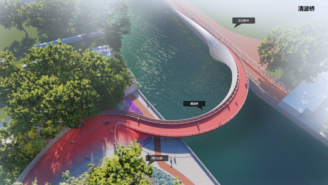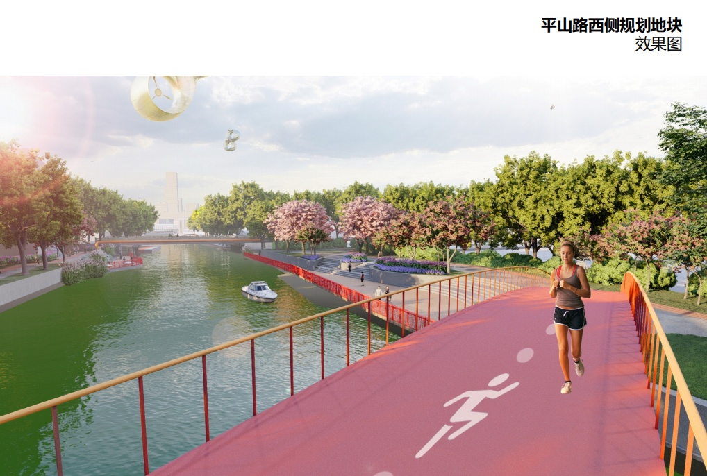 三是延续老闵行水乡记忆和“双鲤”文化,增加4座景观桥,与现有的桥梁重现昔日水街“一桥一诗情”的文化胜景。