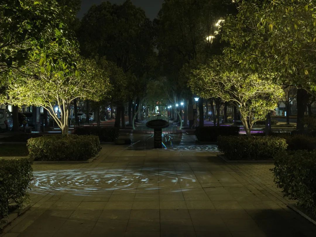 韩谊路生活景观带是被城市社区限定而成的、具有带状特定的公园绿地,附近分布着众多的中高档小区。夜景灯光充分利用景观带优越的地理条件和绿化布局,用灯光满足不同的环境诉求。
