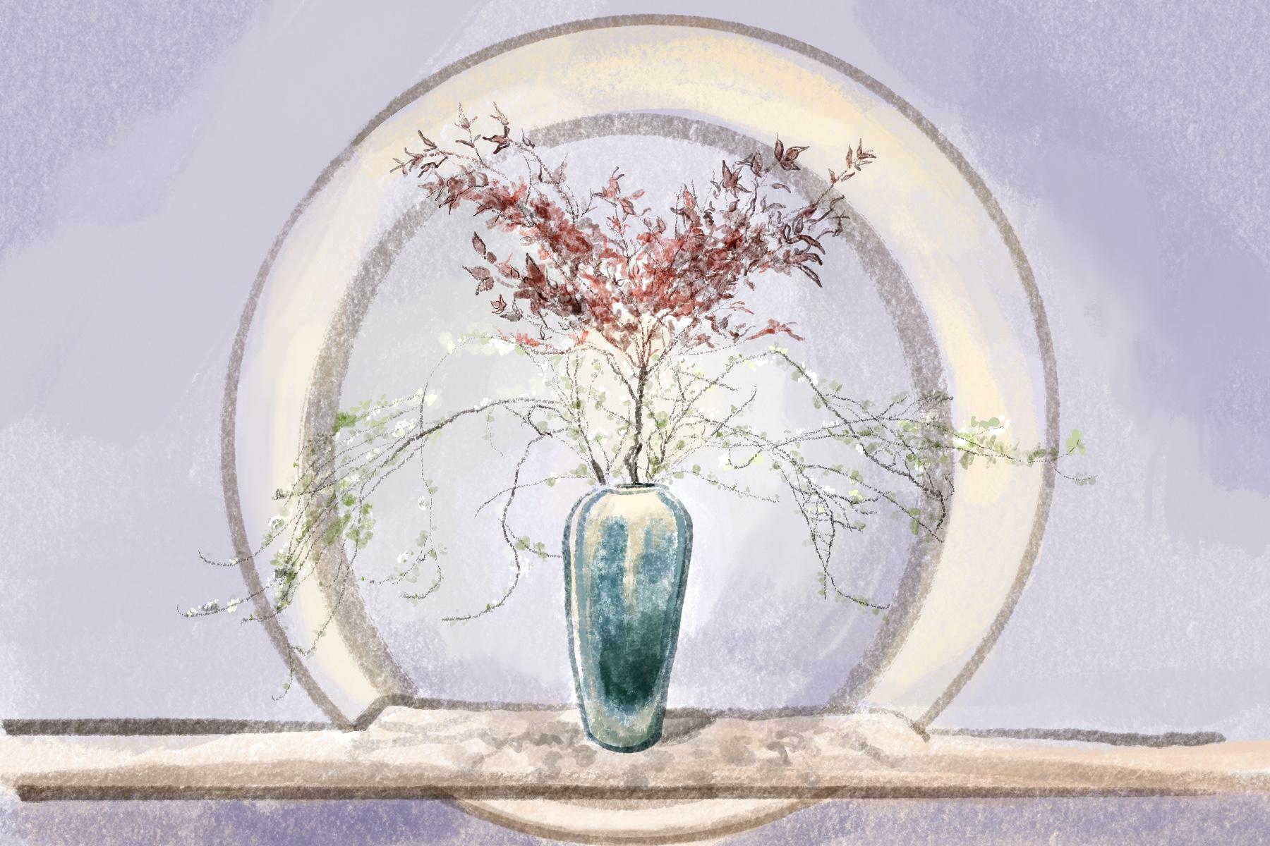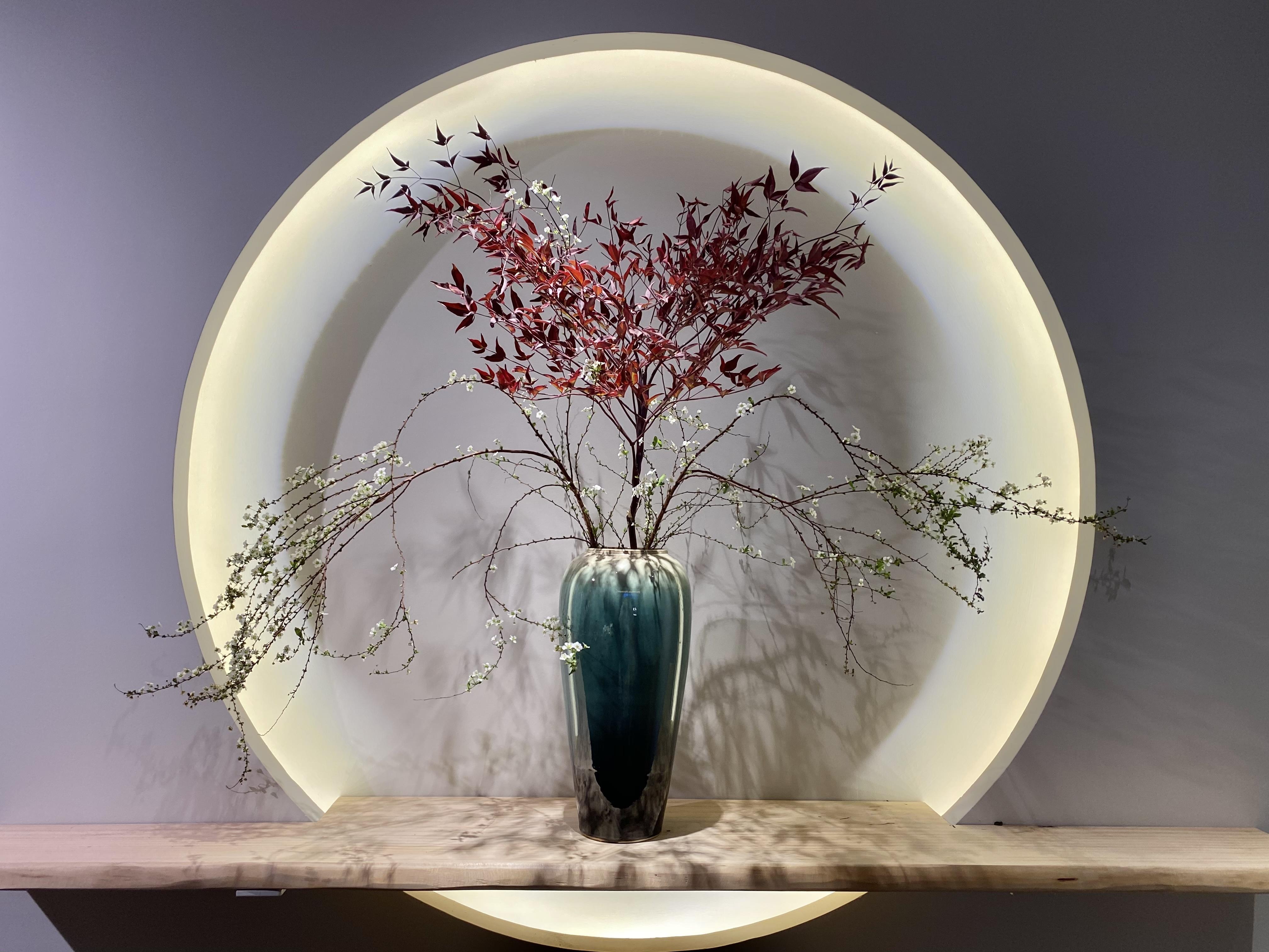 不要用你的习以为常来判断人或事物。这不,在一家连锁酒店的门口就发现了意境悠远的插花。优雅的配色和舒展的枝条,点点的小花颇有水墨画留白的味道。