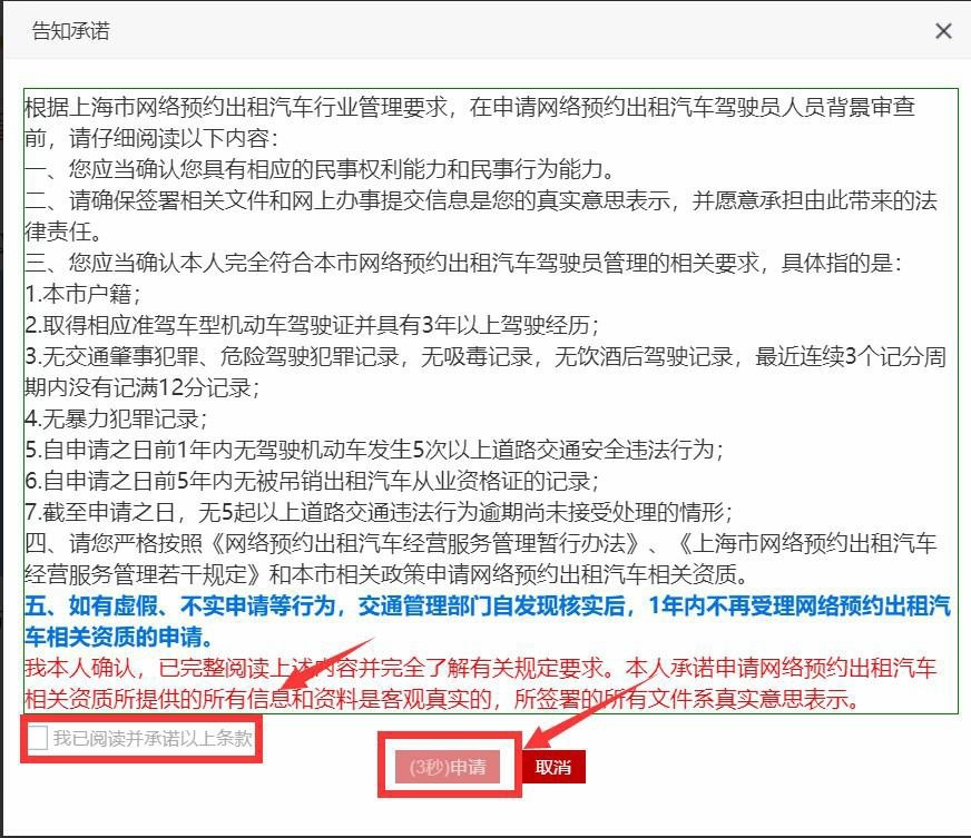 (2)请务必仔细阅读相关告知承诺,逐条核对是否符合规定后勾选“我已阅读并承诺以上条款”,再点击申请。