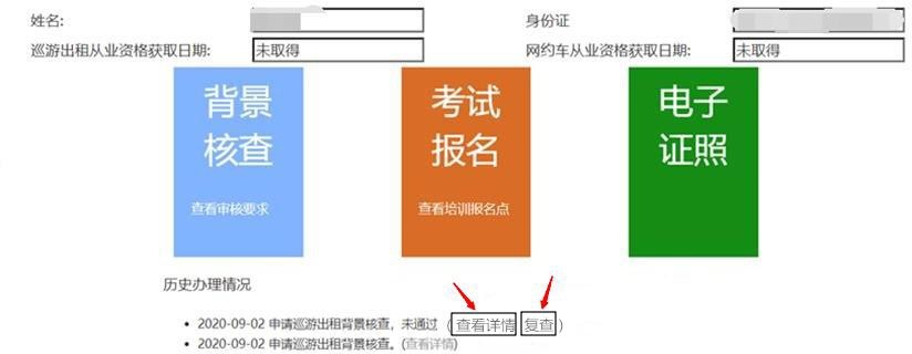 (9)审查未通过的,点击“查看详情”确认自己填写的信息,可申请复查(仅复查一次),最后点击“复查”申请复查。