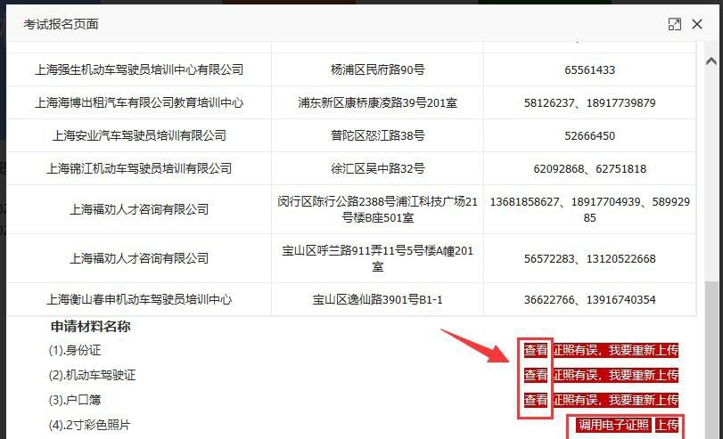 (4)查看之前上传的申请材料是否有误,如有误请重新上传。并且调用2寸电子证照进行上传。