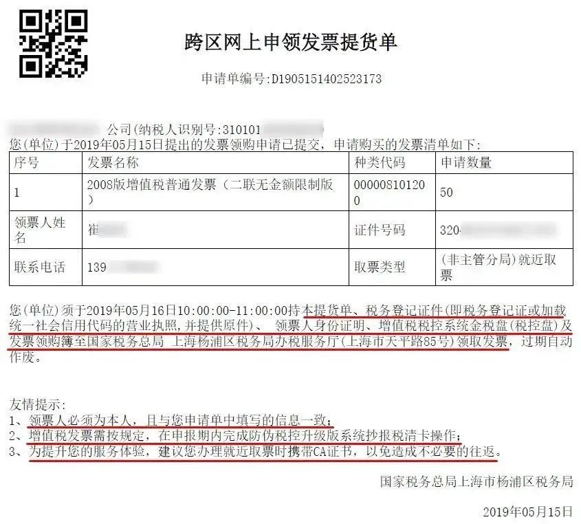 5.带网上申领发票提货单、营业执照原件、领票人身份证明、增值税税控系统金税盘(税控盘)及发票领购簿,去领取您的发票吧!