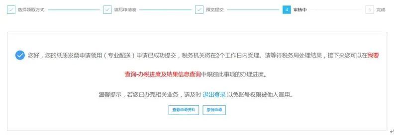可以点击【查看我的申请资料】按钮查看申请。若填写信息有误,且税务机关尚未受理的话,也可以点击【撤销】按钮进行撤销的哦!