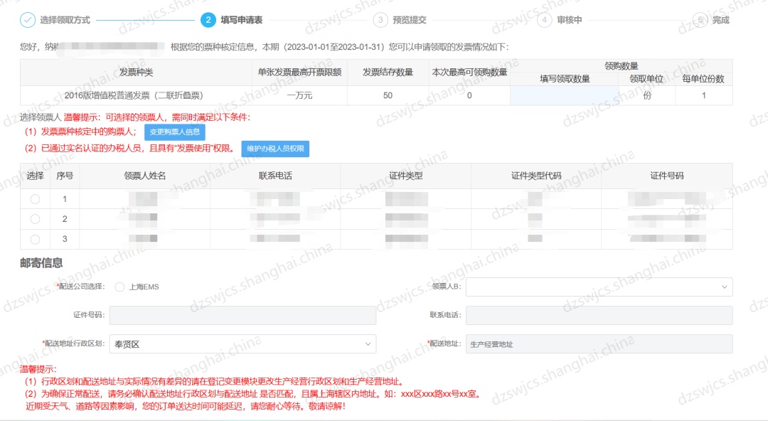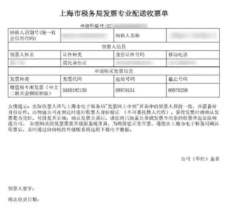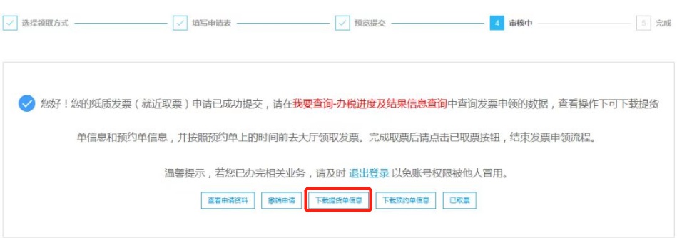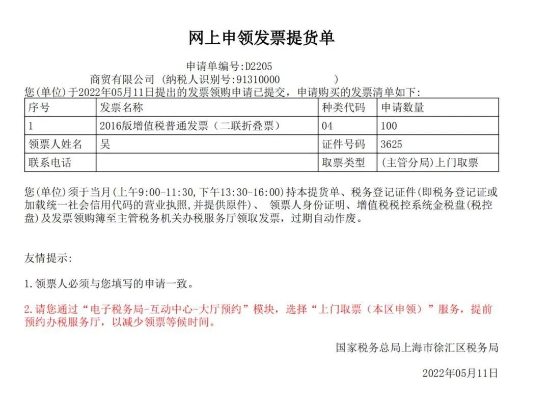 4.取得网上申领发票提货单后,即可办理预约上门取票服务啦!