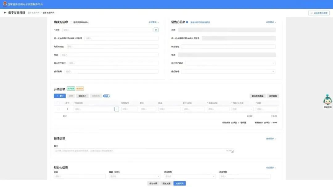 选择不同类型的发票、票种,录入购买方信息、开票信息等内容后,可保存草稿、预览发票或直接开具。点击“发票开具”,电子发票服务平台校验通过后,就会自动赋予发票号码并按不同业务类型生成相应的数字化电子发票啦!
