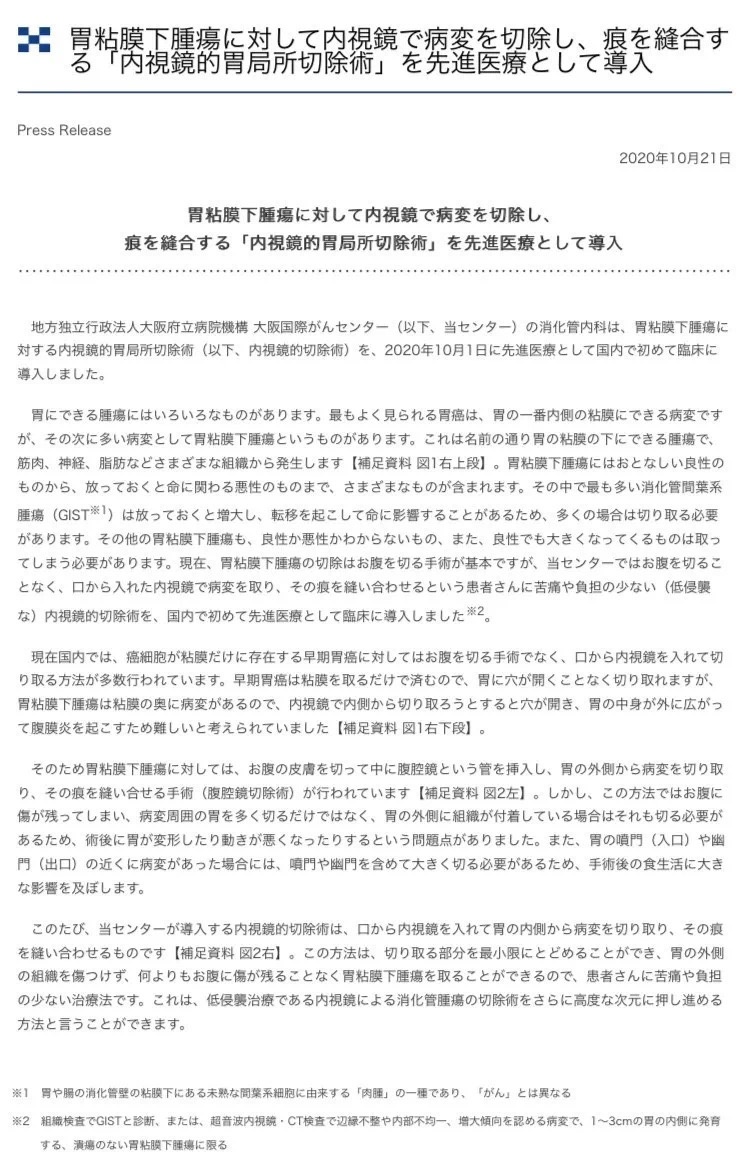 经过一番努力,2020年10月,日本厚生劳动省正式批准了内镜黏膜下挖除术(ESE)及全层切除技术(EFTR)用于胃黏膜下肿瘤的治疗,并纳入医保体系,这标志着日本开启了内镜治疗黏膜下肿瘤的时代,是消化内镜治疗史上的一个里程碑。