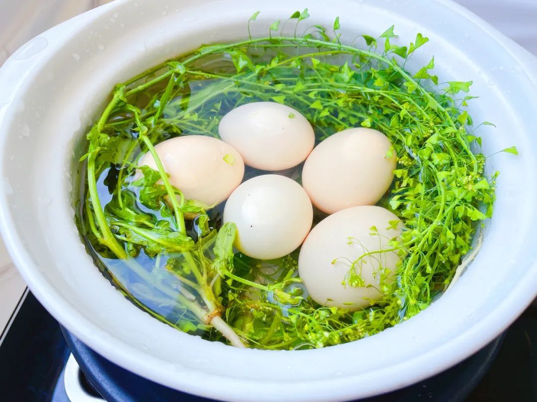 将材料洗净,一同放入锅内煮熟。鸡蛋可以窝在荠菜中,这样荠菜香味可以进入鸡蛋中。喜欢吃甜的此时可以加入红枣。