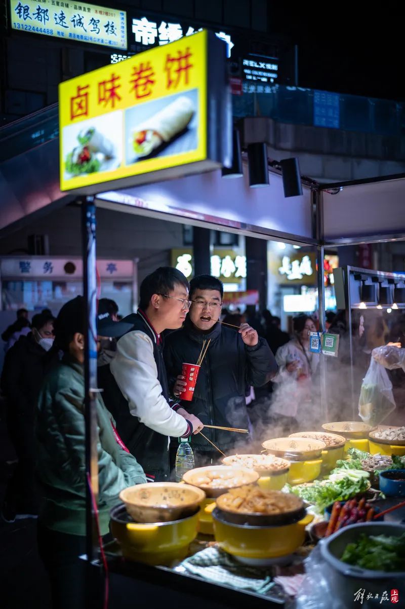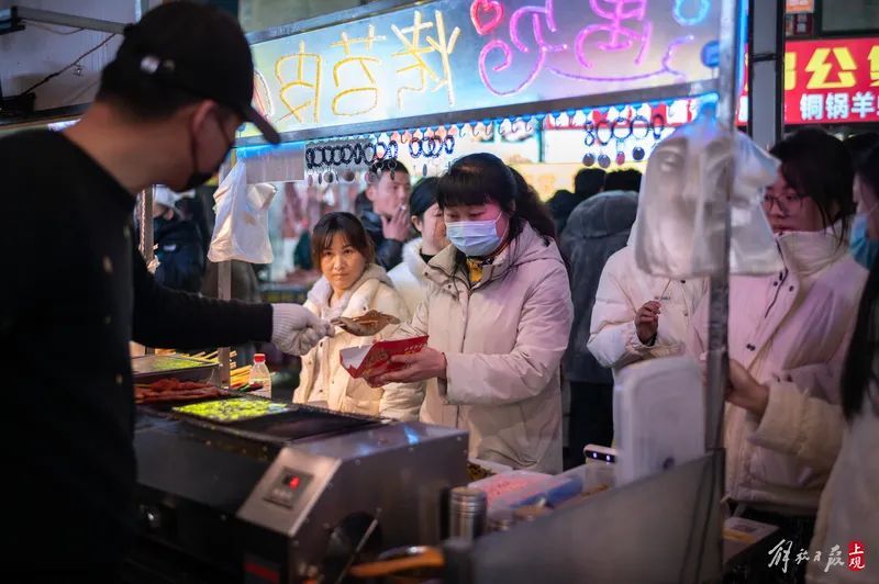 晚上9点半,商业广场的地下停车场的出口闸机排起长队,离场的平均等待时间大约在10分钟左右。夜市中的不少摊主也谈及,很多客人不惜驱车数十公里,专程来到这里体验人气,寻找家乡的味道。