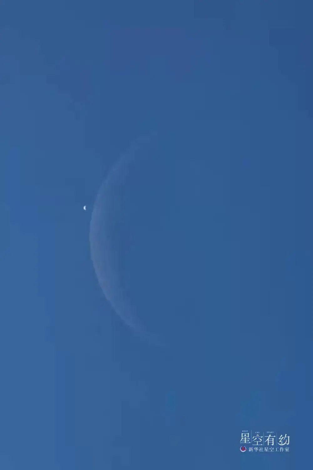 “24日为农历闰二月初三,月相为如钩般的蛾眉月,我国南方部分地区可以看到金星被小月牙‘吃掉’的趣味一幕,而北方地区虽然看不到掩星过程,但却可以看到金星在小月牙旁‘擦肩而过’,也非常具有观赏性。”宋媛媛说。
