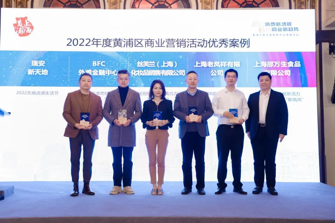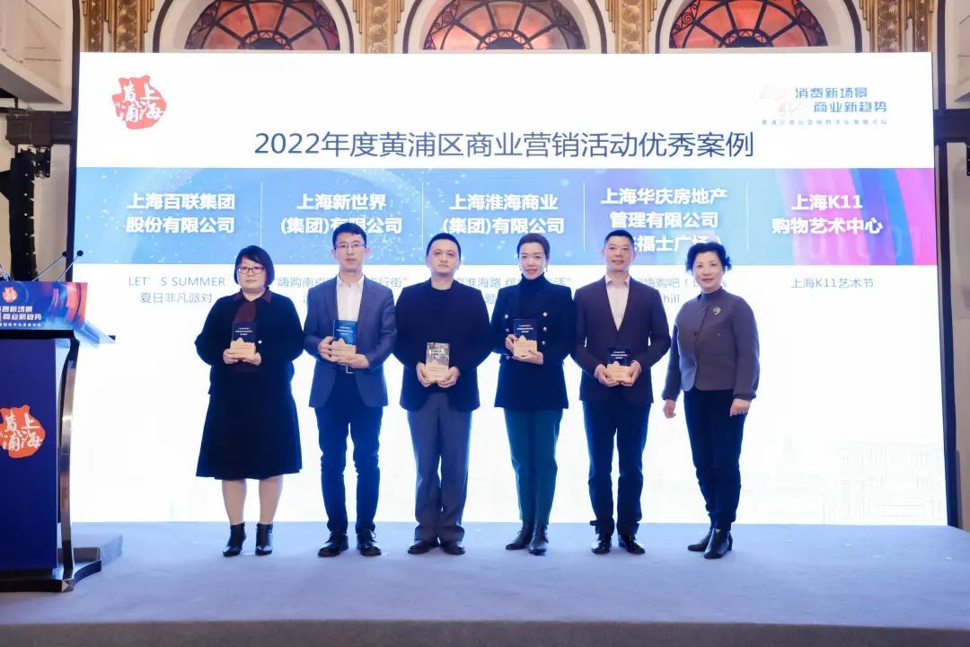 刘敏、王鼐向荣获“2022年度黄浦区商业营销活动‘十佳’优秀案例”的商业企业颁发奖杯。
