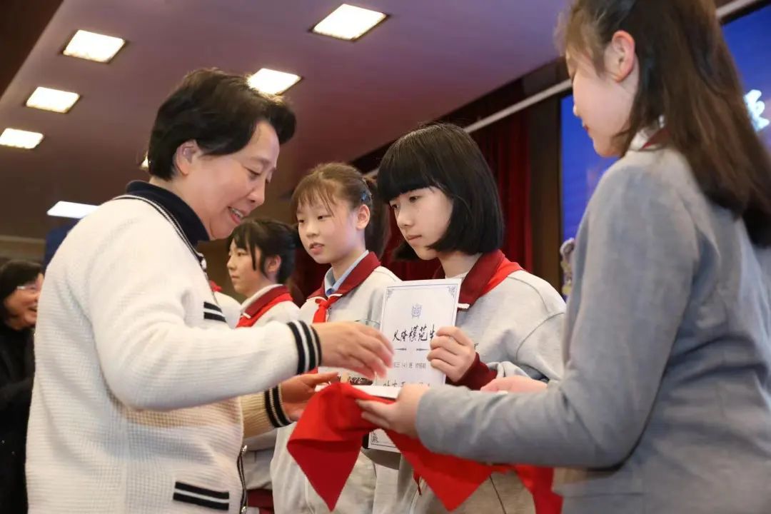 仪式上,十届上海市政协副主席、国家教材委员会专家委员、上海市教育发展基金会理事长王荣华,以于漪、曹鹏、樊锦诗等杰出人物的小故事勉励久隆学子不负青春,自强不息,逐梦星辰大海;不忘感恩,与善同行,成长为新时代的模范公民。
