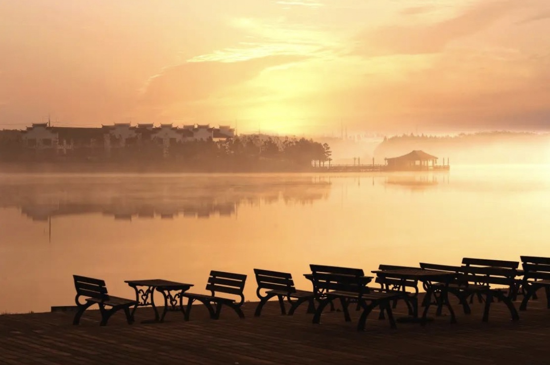 一湖三岭七道湾,春风又绿江南岸。海湾森林公园里处处梅园,梅花簇簇,红的、粉的、黄的、白的,煞是好看。梅树枝丫上嫩绿的芽,未绽放的花苞,肆意开放的梅花,以及与春风缠缠绵绵的阵阵花香,浸染在夕阳温暖的光晕下。暗香浮动,颠倒众生。