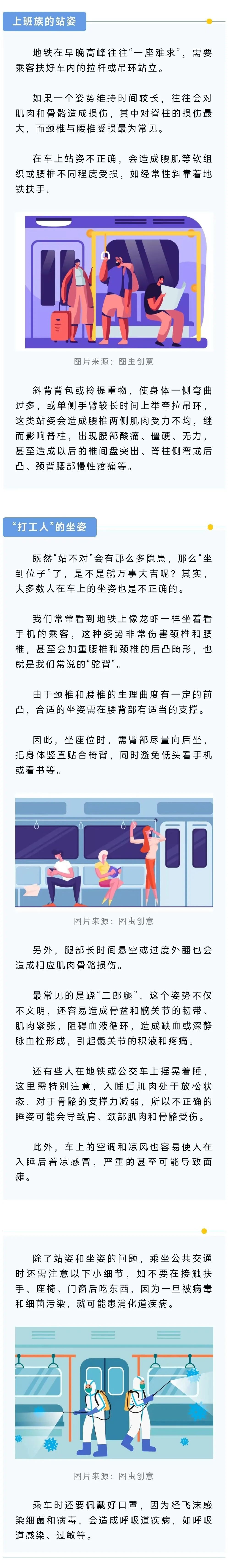 市健促中心介绍,乘公交、坐地铁早已成为人们日常生活中的一部分,地铁更是上班通勤的首选交通工具。然而,生活中的不少健康问题有可能是乘公共交通时的“坏习惯”引发的,“站”和“坐”都有讲究,不然可能会有健康隐患!让我们一起来看专家建议↓