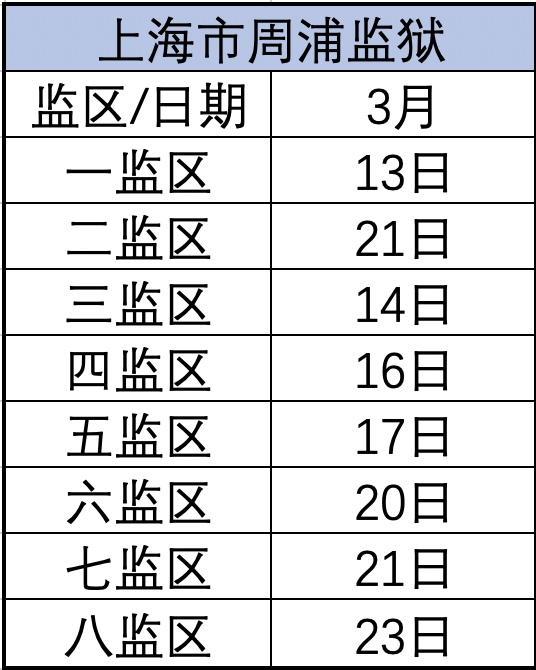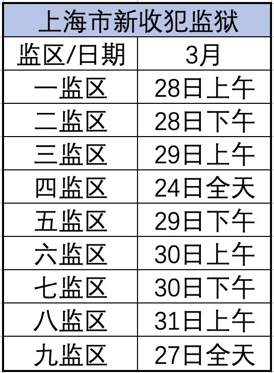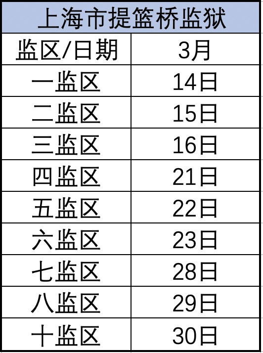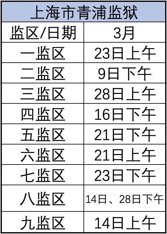 2、部分会见日可能有所调整,请关注上海市监狱管理局门户网站及“上海监狱”微信公众号。