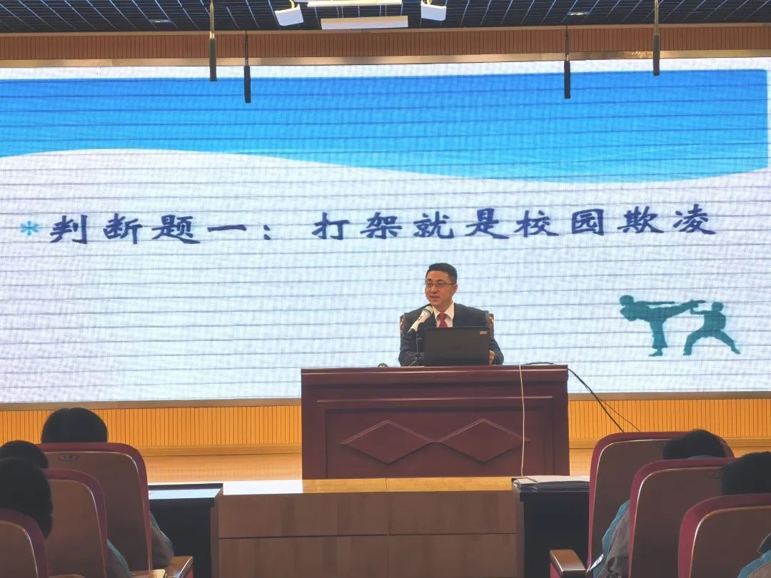 课堂上,法治副校长高波围绕这些问题,结合视频及典型案例向学生们展开专题授课,让学生们认识到了校园欺凌的危害性,同时提醒学生们牢记校园欺凌“三不三要”要诀,提高自我保护和自我防范的意识,积极运用法律武器保护自己:
