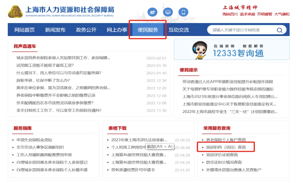 通过上海市人力资源和社会保障局官网(http://rsj.sh.gov.cn)中“便民服务”—“常用服务查询”—“培训机构(项目)查询”。