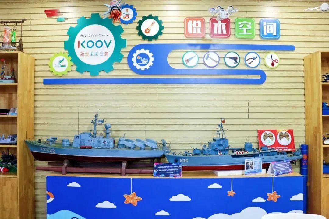 一艘艘准备扬帆起航的木船、一件件活泼而极具个性的木偶……三楼的木工坊摆放着学生制作的各种手工作品,在全国青少年优秀科技辅导员周中梁团队的指导下,学生们在创造发明、陆海空模型、生物环保、机器人、头脑奥林匹克等各项科技活动中斩获佳绩,提升了独立自主的创造力,持续弘扬一丝不苟的工匠精神。