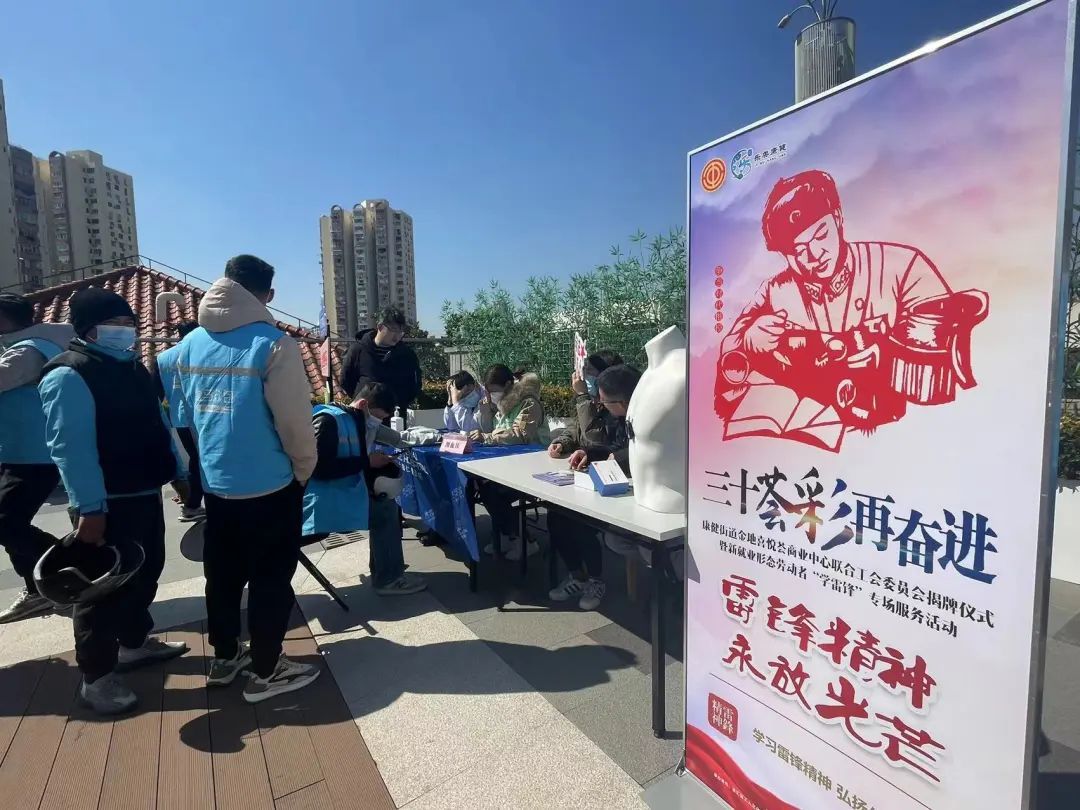 徐汇区总工会、康健街道总工会近日共同举办三十荟彩再奋进——金地喜悦荟商业中心联合工会委员会揭牌仪式暨“学雷锋”专场服务活动。康健街道金地喜悦荟商铺职工、盒马骑手约百人参加活动。